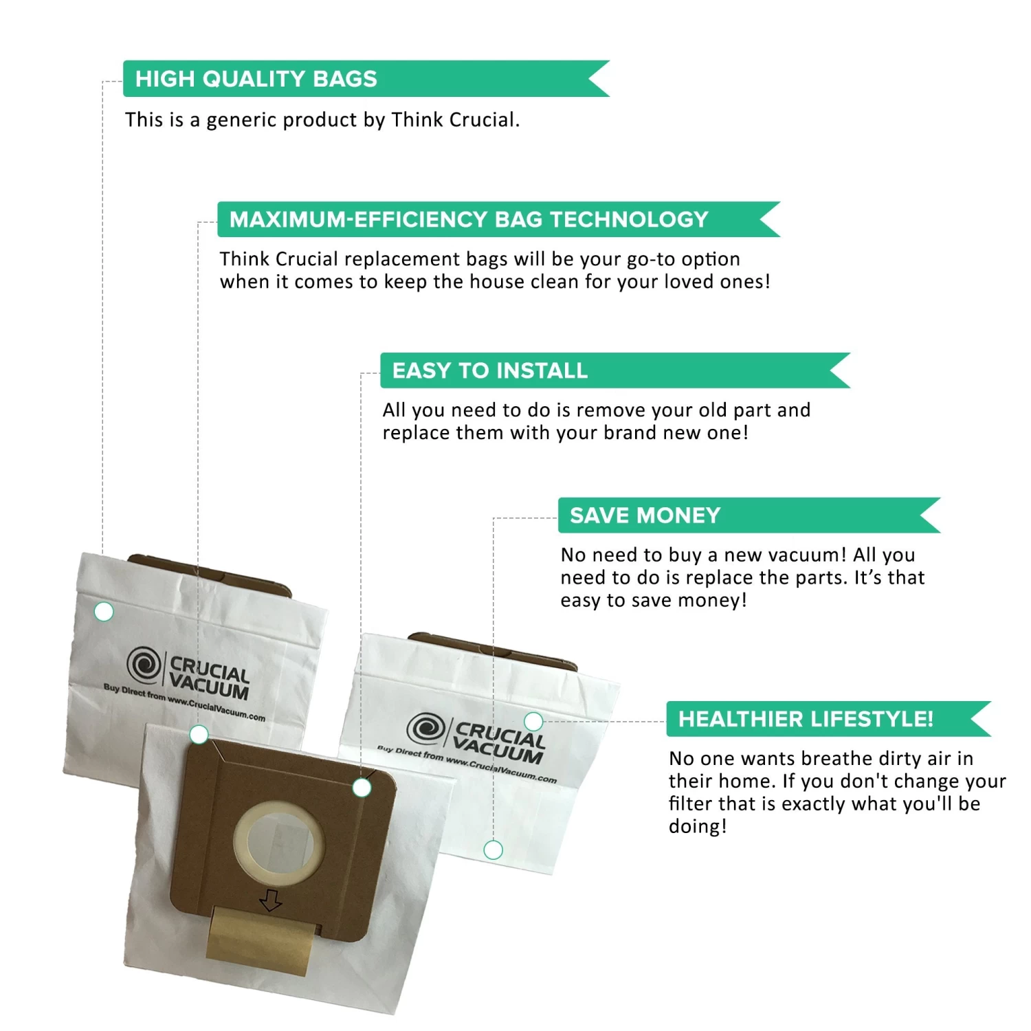 Please note the following important information about this product from Think Crucial: (i) it is a generic replacement, NOT a Dirt Devil® Original Equipment Manufacturer (OEM) product; (ii) because it is not a Dirt Devil® OEM product, it is not covered by any Dirt Devil® guarantee or warranty; (iii) use of this generic replacement may violate or void Dirt Devil’s® guarantee or warranty – it is entirely your responsibility to check, and entirely your risk if you decide to use this product; (iv) we do not guarantee or warrant that this generic replacement is compatible with any product from Dirt Devil® or any other provider. Please check your manufacturer’s warranty with regard to the use of non-OEM parts. Think Crucial provides no warranty or guarantee with regard to the product or its compatibility with your Dirt Devil® product. The Dirt Devil® brand and all Dirt Devil® trademarks belong to Dirt Devil® or its affiliates, and are used here only to explain the compatibility features of the generic replacement product.