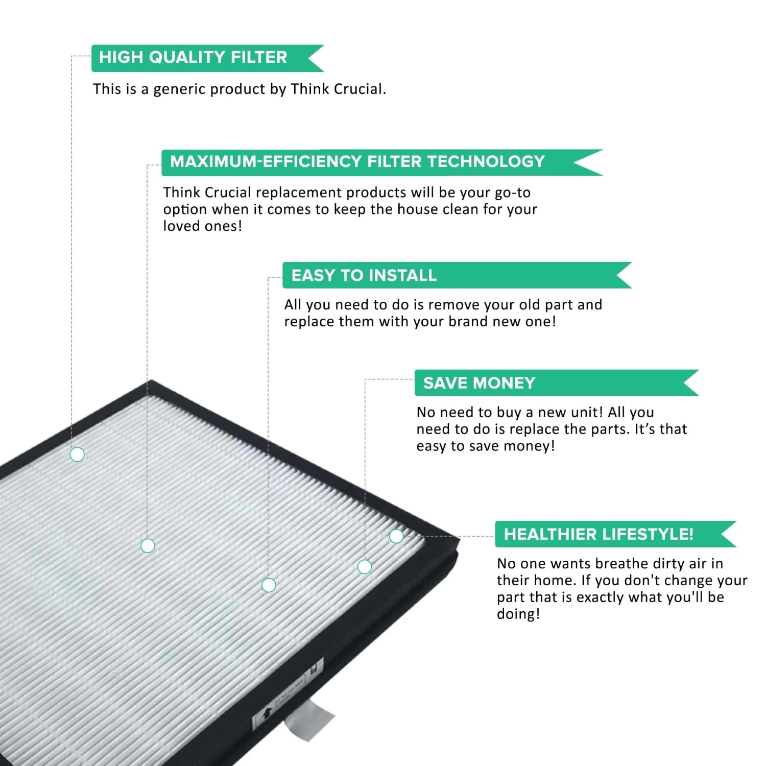 This HEPA filter cleans indoor air of smoke, pollen, dust, mold spores, pet dander and other allergens. And among all filters, HEPA filters are the top choice because it can filter out air pollutants 99% better than most types. So if you want to get rid of all those runny noses and watery eyes, use a HEPA filter. Used for the purpose of cleaning and removing allergens and other pollutants from your air. Definitely important for those who have allergies!
