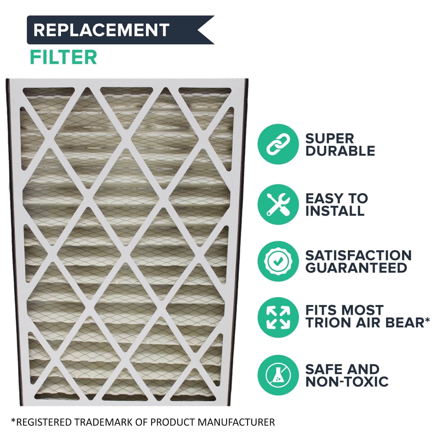 Please note the following important information about this product from Think Crucial: (i) it is a generic replacement, NOT a Trion Air Bear® Original Equipment Manufacturer (OEM) product; (ii) because it is not a Trion Air Bear® OEM product, it is not covered by any Trion Air Bear® guarantee or warranty; (iii) use of this generic replacement may violate or void Trion Air Bear’s® guarantee or warranty – it is entirely your responsibility to check, and entirely your risk if you decide to use this product; (iv) we do not guarantee or warrant that this generic replacement is compatible with any product from Trion Air Bear® or any other provider. Please check your manufacturer’s warranty with regard to the use of non-OEM parts. Think Crucial provides no warranty or guarantee with regard to the product or its compatibility with your Trion Air Bear® product. The Trion Air Bear® brand and all Trion Air Bear® trademarks belong to Trion Air Bear® or its affiliates, and are used here only to explain the compatibility features of the generic replacement product.