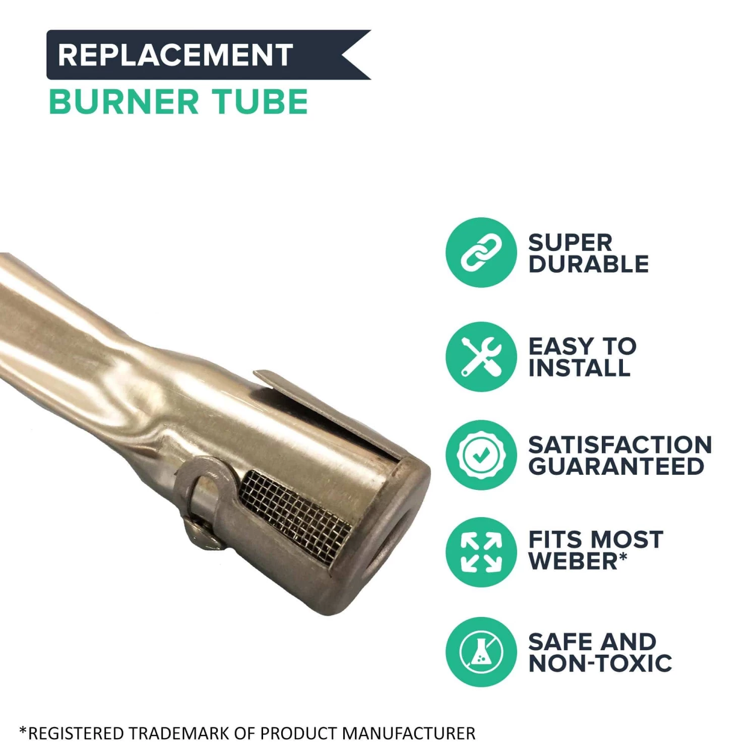 This is a generic product designed and engineered in the United States by Think Crucial. This is not a Weber® OEM product and is not covered under any Weber® manufacturer’s warranty. Please check your manufacturer’s warranty with regard to the use of non-OEM parts. Think Crucial provides no warranty or guarantee with regard to the product or its compatibility with your Weber® product. Any use of Think Crucial non-OEM products in your Weber® product is done at your own risk. The Weber® brand names and logos are the registered trademarks of their respective owners. Any use of the Weber® brand name or model designation for this product is made solely for purposes of demonstrating compatibility.