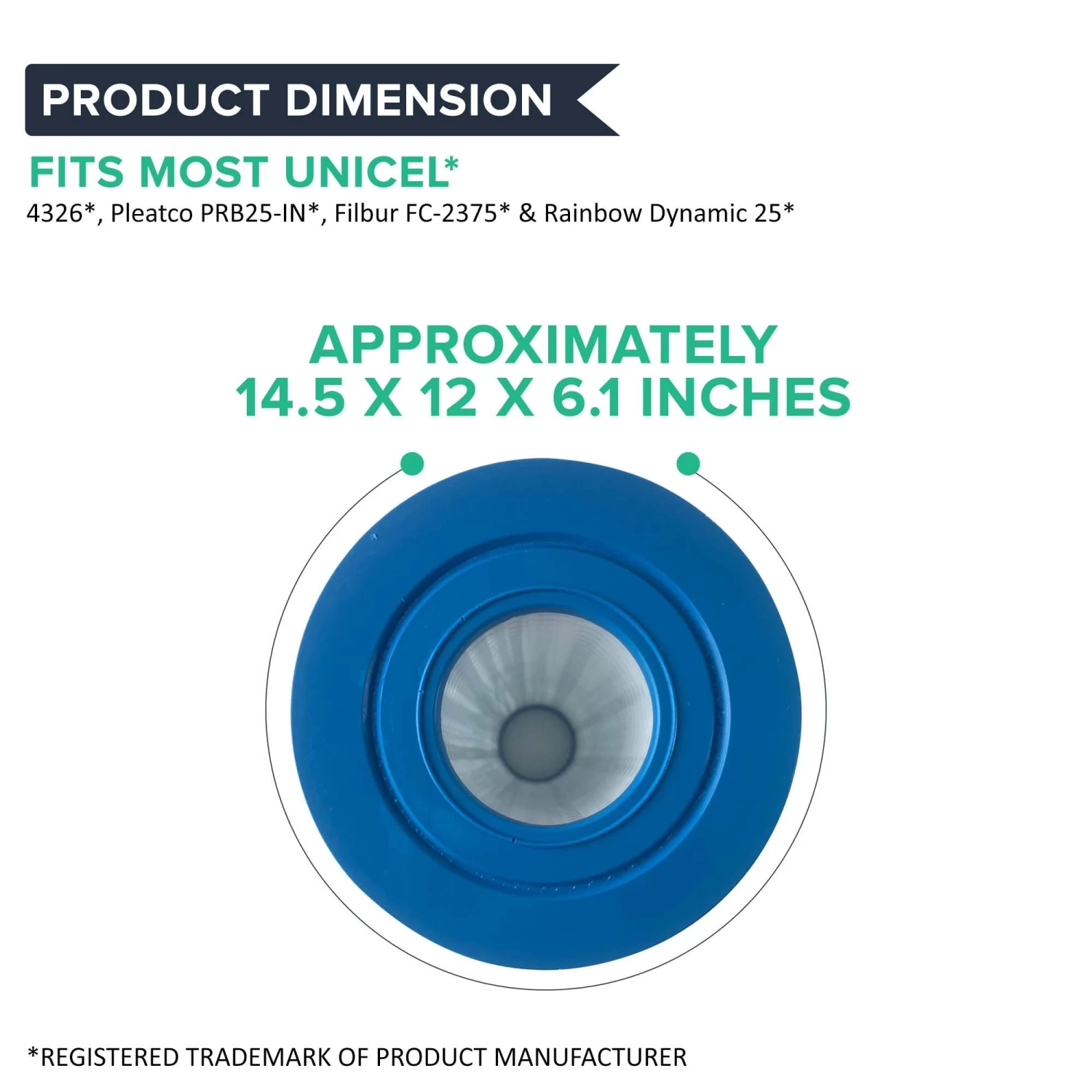 - Filbur FC-2375, Pleatco PRB25-IN, Unicel C-4326, Rainbow Dynamic 25 and other models