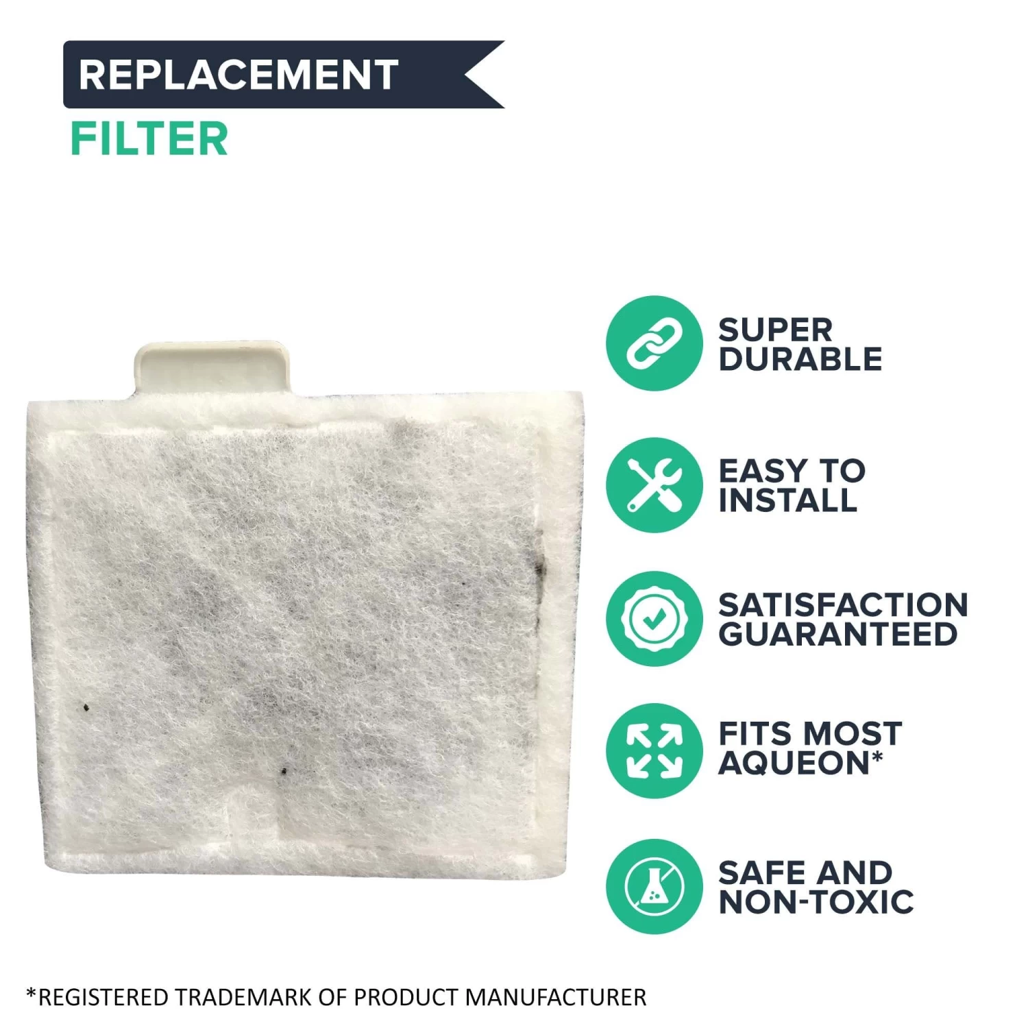 This is a generic product designed and engineered in the United States by Think Crucial. This is not a Aqueon® OEM product and is not covered under any Aqueon® manufacturer’s warranty. Please check your manufacturer’s warranty with regard to the use of non-OEM parts. Think Crucial provides no warranty or guarantee with regard to the product or its compatibility with your Aqueon® product. Any use of Think Crucial non-OEM products in your Aqueon® product is done at your own risk. The Aqueon® brand names and logos are the registered trademarks of their respective owners. Any use of the Aqueon® brand name or model designation for this product is made solely for purposes of demonstrating compatibility.