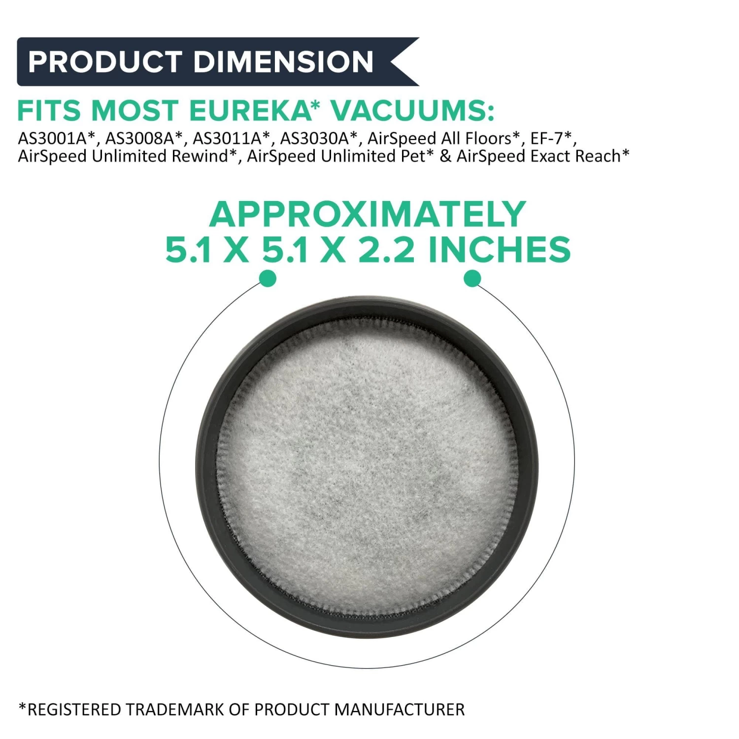 Works with Eureka Vacuum Cleaner Models AS3001A, AS3008A, AS3011A AS3030A Series compatibility with Eureka AirSpeed All Floors, AirSpeed Unlimited Rewind, AirSpeed Unlimited Pet (AS3000 Series) Uprights, AirSpeed Exact Reach, and Brushright Clean