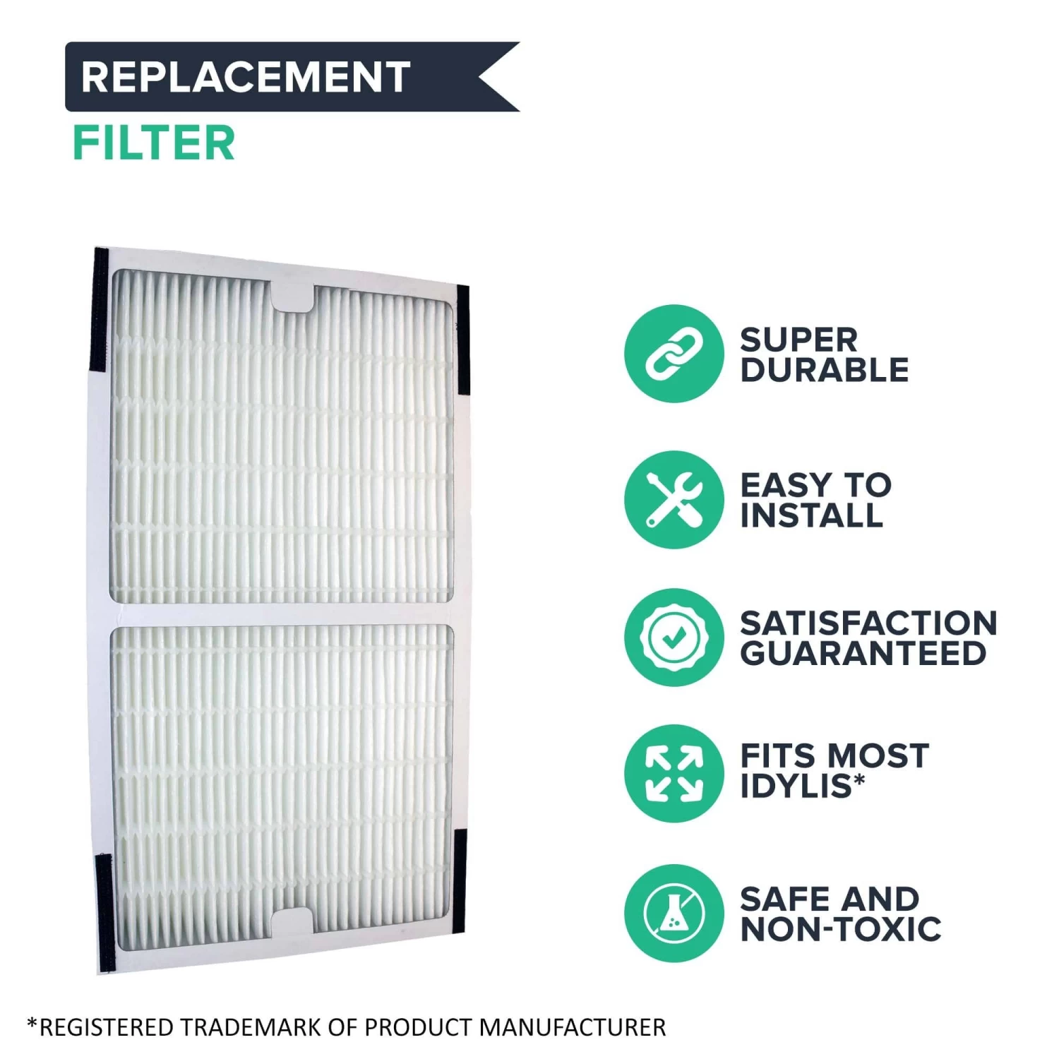Please note the following important information about this product from Think Crucial: (i) it is a generic replacement, NOT an Idylis® Original Equipment Manufacturer (OEM) product; (ii) because it is not an Idylis® OEM product, it is not covered by any Idylis® guarantee or warranty; (iii) use of this generic replacement may violate or void Idylis’s® guarantee or warranty – it is entirely your responsibility to check, and entirely your risk if you decide to use this product; (iv) we do not guarantee or warrant that this generic replacement is compatible with any product from Idylis® or any other provider. Please check your manufacturer’s warranty with regard to the use of non-OEM parts. Think Crucial provides no warranty or guarantee with regard to the product or its compatibility with your Idylis® product. The Idylis® brand and all Idylis® trademarks belong to Idylis® or its affiliates, and are used here only to explain the compatibility features of the generic replacement product.