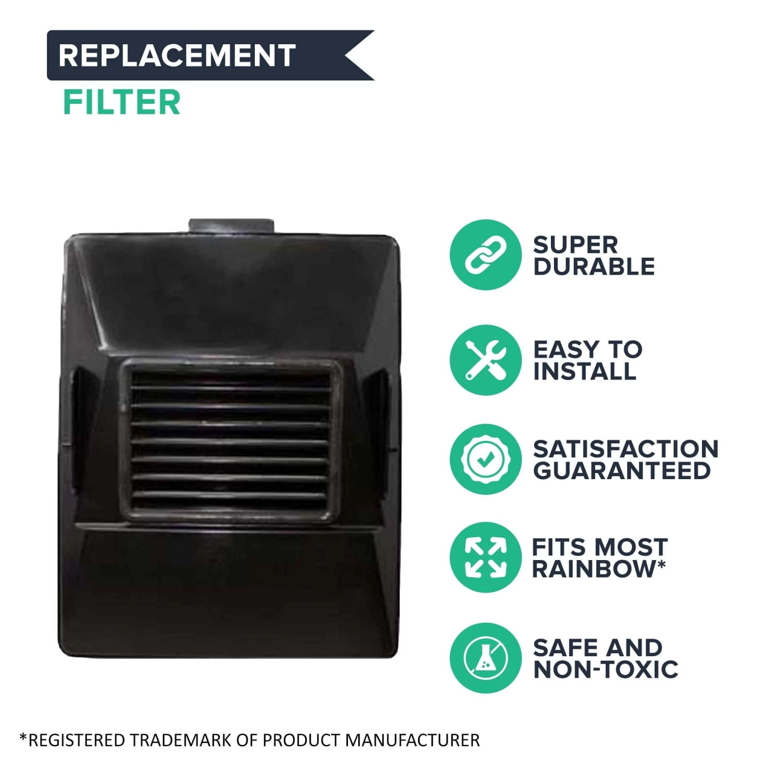 Save your air quality with a brand new Rainbow Rexair neutralizer filter for your vacuum. Over time, your vacuum filter gets old, loses efficiency, and begins to allow fine dust and allergens to escape back into your air. If things get really bad, your old filter could even be blocking the airway in your vacuum, so that it loses efficiency! Come to the rescue with this brand new, washable, HEPA exhaust filter for your Rainbow Rexair E vacuum. This Rainbow Rexair E filter is completely washable and reusable, so you can just tape the dust out into a waste bin, rinse out in cold or lukewarm water, and allow it to dry for 24 to 36 hours to restore the filter to maximum efficiency. This should be done ever 3-4 uses, or at least once a month.