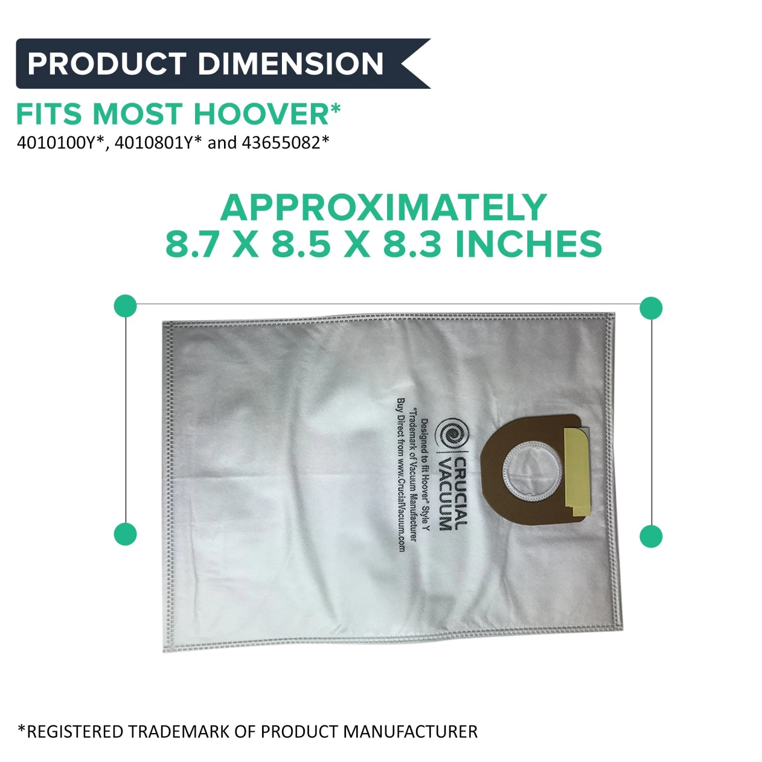 Please note the following important information about this product from Think Crucial: (i) it is a generic replacement, NOT a Hoover® Original Equipment Manufacturer (OEM) product; (ii) because it is not a Hoover® OEM product, it is not covered by any Hoover® guarantee or warranty; (iii) use of this generic replacement may violate or void Hoover’s® guarantee or warranty – it is entirely your responsibility to check, and entirely your risk if you decide to use this product; (iv) we do not guarantee or warrant that this generic replacement is compatible with any product from Hoover® or any other provider. Please check your manufacturer’s warranty with regard to the use of non-OEM parts. Think Crucial provides no warranty or guarantee with regard to the product or its compatibility with your Hoover® product. The Hoover® brand and all Hoover® trademarks belong to Hoover® or its affiliates, and are used here only to explain the compatibility features of the generic replacement product.
