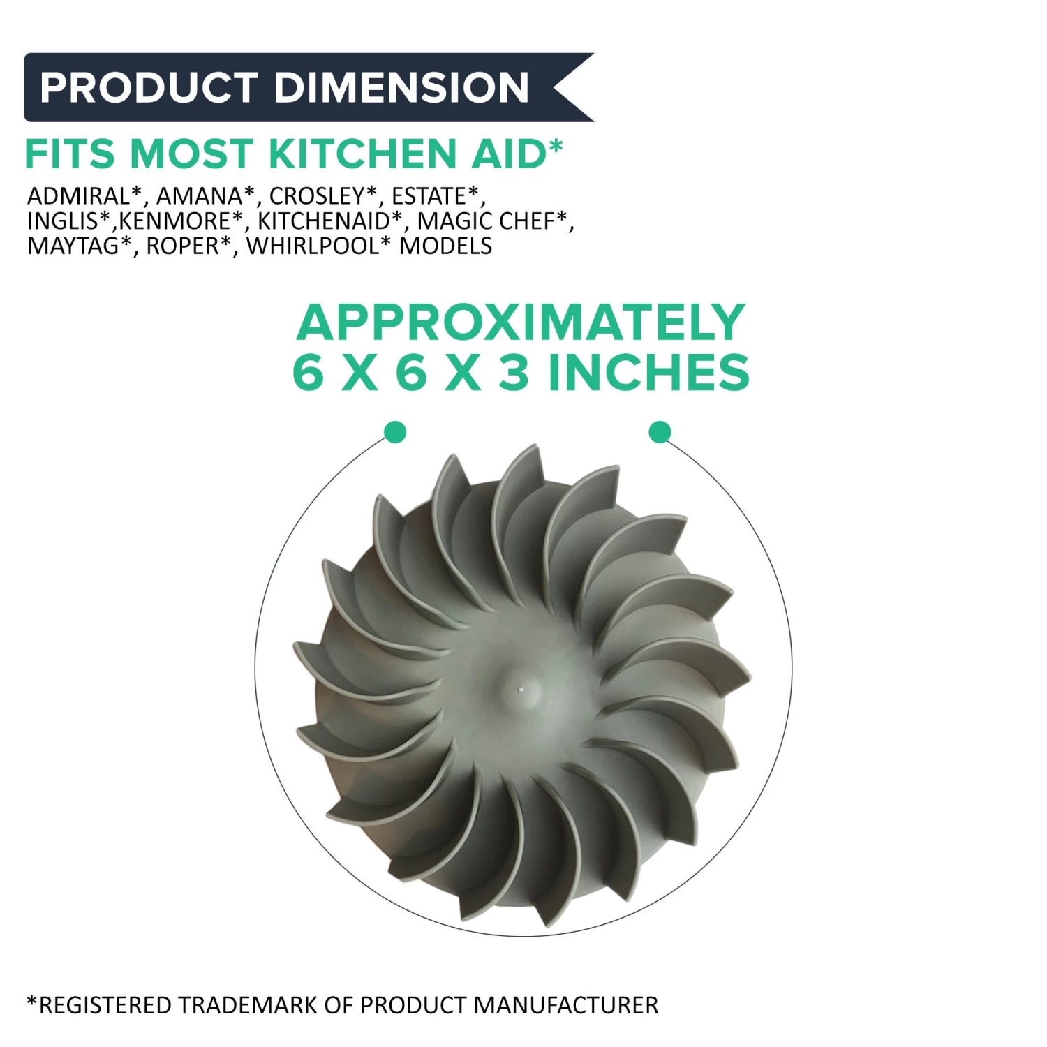 This is a generic product designed and engineered in the United States by Think Crucial. This is not a Admiral®, Amana®, Crosley®, Estate®, Inglis®, Kenmore®, KitchenAid®, Magic Chef®, Maytag®, Roper®, Whirlpool® OEM product and is not covered under any Admiral®, Amana®, Crosley®, Estate®, Inglis®, Kenmore®, KitchenAid®, Magic Chef®, Maytag®, Roper®, Whirlpool® manufacturer’s warranty. Please check your manufacturer‰۪s warranty with regard to the use of non-OEM parts. Think Crucial provides no warranty or guarantee with regard to the product or its compatibility with your Admiral®, Amana®, Crosley®, Estate®, Inglis®, Kenmore®, KitchenAid®, Magic Chef®, Maytag®, Roper®, Whirlpool® product. Any use of Think Crucial non-OEM products in your Admiral®, Amana®, Crosley®, Estate®, Inglis®, Kenmore®, KitchenAid®, Magic Chef®, Maytag®, Roper®, Whirlpool® product is done at your own risk. The Admiral®, Amana®, Crosley®, Estate®, Inglis®, Kenmore®, KitchenAid®, Magic Chef®, Maytag®, Roper®, Whirlpool® brand names and logos are the registered trademarks of their respective owners. Any use of the Admiral®, Amana®, Crosley®, Estate®, Inglis®, Kenmore®, KitchenAid®, Magic Chef®, Maytag®, Roper®, Whirlpool® brand name or model designation for this product is made solely for purposes of demonstrating compatibility.