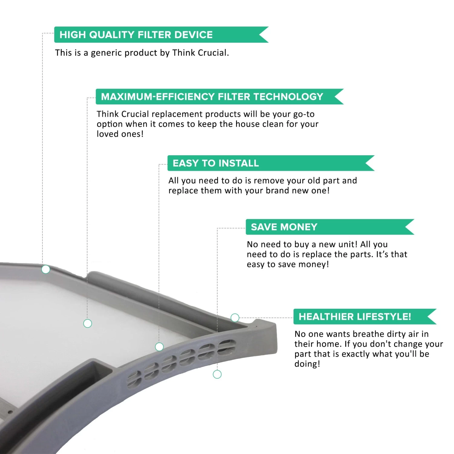 Please note the following important information about this product from Think Crucial: (i) it is a generic replacement, NOT a Whirlpool® Original Equipment Manufacturer (OEM) product; (ii) because it is not a Whirlpool® OEM product, it is not covered by any Whirlpool® guarantee or warranty; (iii) use of this generic replacement may violate or void Whirlpool’s® guarantee or warranty – it is entirely your responsibility to check, and entirely your risk if you decide to use this product; (iv) we do not guarantee or warrant that this generic replacement is compatible with any product from Whirlpool® or any other provider. Please check your manufacturer’s warranty with regard to the use of non-OEM parts. Think Crucial provides no warranty or guarantee with regard to the product or its compatibility with your Whirlpool® product. The Whirlpool® brand and all Whirlpool® trademarks belong to Whirlpool® or its affiliates, and are used here only to explain the compatibility features of the generic replacement product.