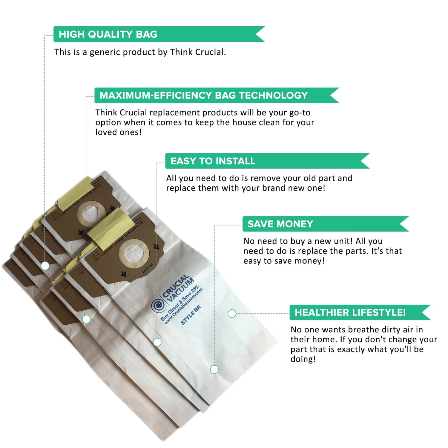 Allergens are invading your home every time you turn around, every time you open a door, a window, or even walk inside without sanitizing yourself at the door. And who has the time for that! Dust is also everywhere, and even your own skin will betray you by leaving particles everywhere. Defend yourself with these brand new Eureka RR paper vacuum bags to maximize the efficiency of your Eureka upright. Each Eureka paper vacuum bag features a heavy duty paper filter media that traps and keeps dust, so your floor and air are clean.