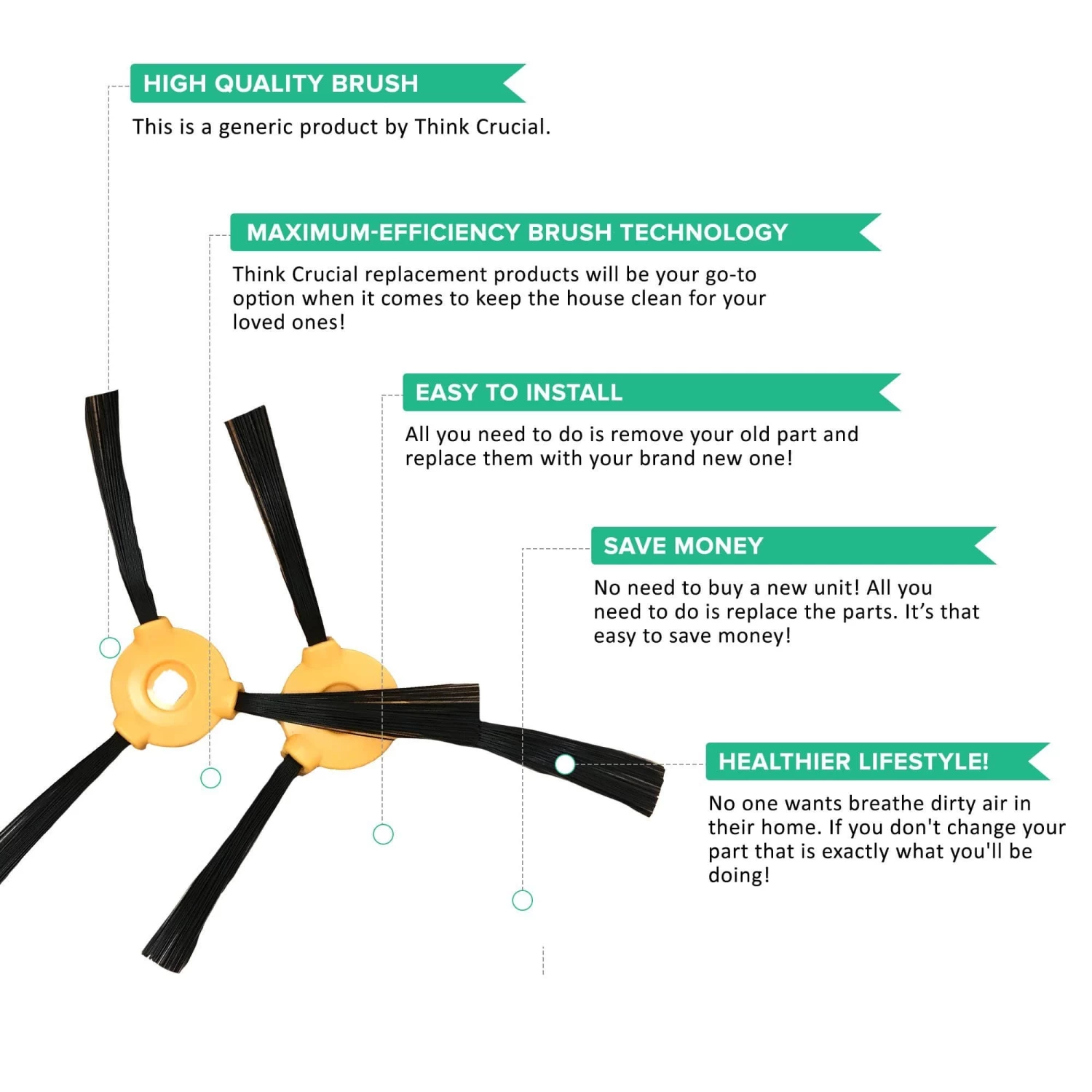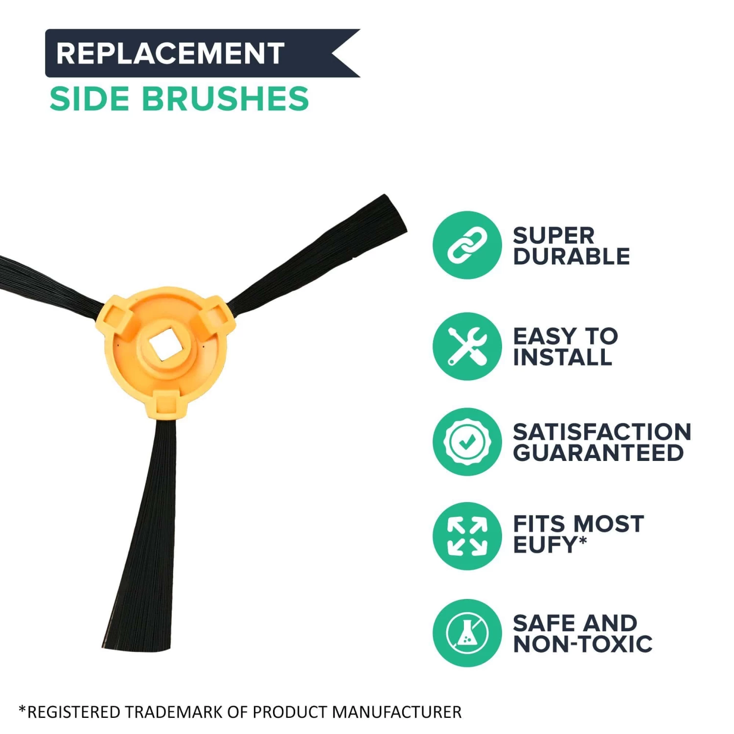 This is a generic product designed and engineered in the United States by Think Crucial. This is not a Eufy® OEM product and is not covered under any Eufy® manufacturer’s warranty. Please check your manufacturer’s warranty with regard to the use of non-OEM parts. Think Crucial provides no warranty or guarantee with regard to the product or its compatibility with your Eufy® product. Any use of Think Crucial non-OEM products in your Eufy® product is done at your own risk. The Eufy® brand names and logos are the registered trademarks of their respective owners. Any use of the Eufy® brand name or model designation for this product is made solely for purposes of demonstrating compatibility.