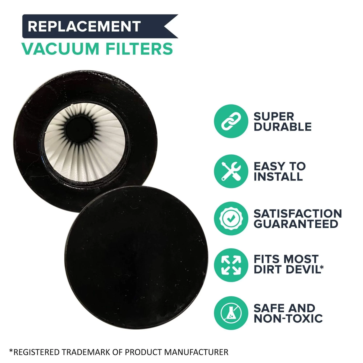 Please note the following important information about this product from Think Crucial: (i) it is a generic replacement, NOT a Dirt Devil® Original Equipment Manufacturer (OEM) product; (ii) because it is not a Dirt Devil® OEM product, it is not covered by any Dirt Devil® guarantee or warranty; (iii) use of this generic replacement may violate or voidDirt Devil’s® guarantee or warranty – it is entirely your responsibility to check, and entirely your risk if you decide to use this product; (iv) we do not guarantee or warrant that this generic replacement is compatible with any product from Dirt Devil® or any other provider. Please check your manufacturer’s warranty with regard to the use of non-OEM parts. Think Crucial provides no warranty or guarantee with regard to the product or its compatibility with your Dirt Devil® product. The Dirt Devil® brand and all Dirt Devil® trademarks belong to Dirt Devil® or its affiliates, and are used here only to explain the compatibility features of the generic replacement product.