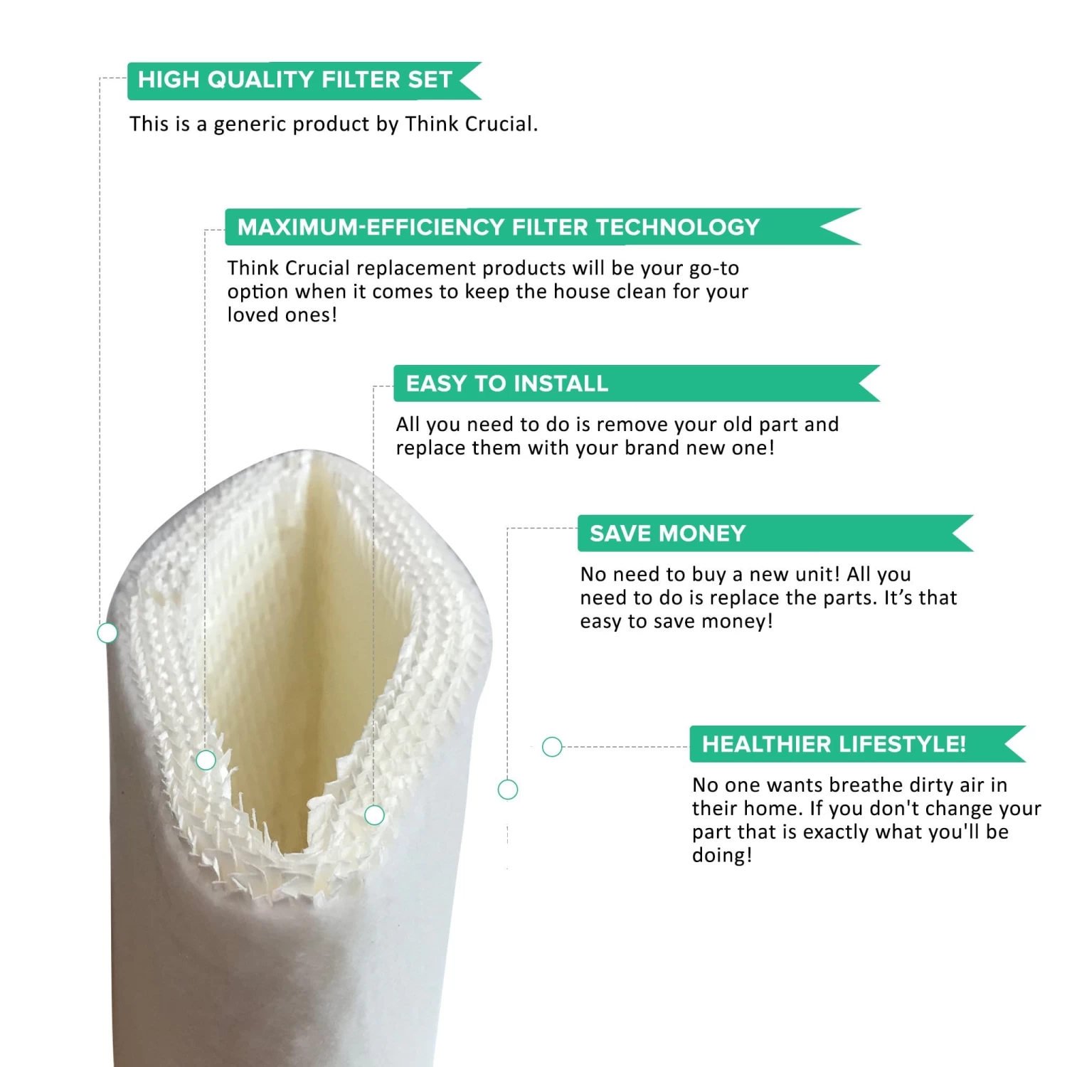 Please note the following important information about this product from Think Crucial: (i) it is a generic replacement, NOT a Honeywell® Original Equipment Manufacturer (OEM) product; (ii) because it is not a Honeywell® OEM product, it is not covered by any Honeywell® guarantee or warranty; (iii) use of this generic replacement may violate or void Honeywell’s guarantee or warranty – it is entirely your responsibility to check, and entirely your risk if you decide to use this product; (iv) we do not guarantee or warrant that this generic replacement is compatible with any product from Honeywell® or any other provider. Please check your manufacturer’s warranty with regard to the use of non-OEM parts. Think Crucial provides no warranty or guarantee with regard to the product or its compatibility with your Honeywell® product. The Honeywell® brand and all Honeywell® trademarks belong to Honeywell® or its affiliates, and are used here only to explain the compatibility features of the generic replacement product.