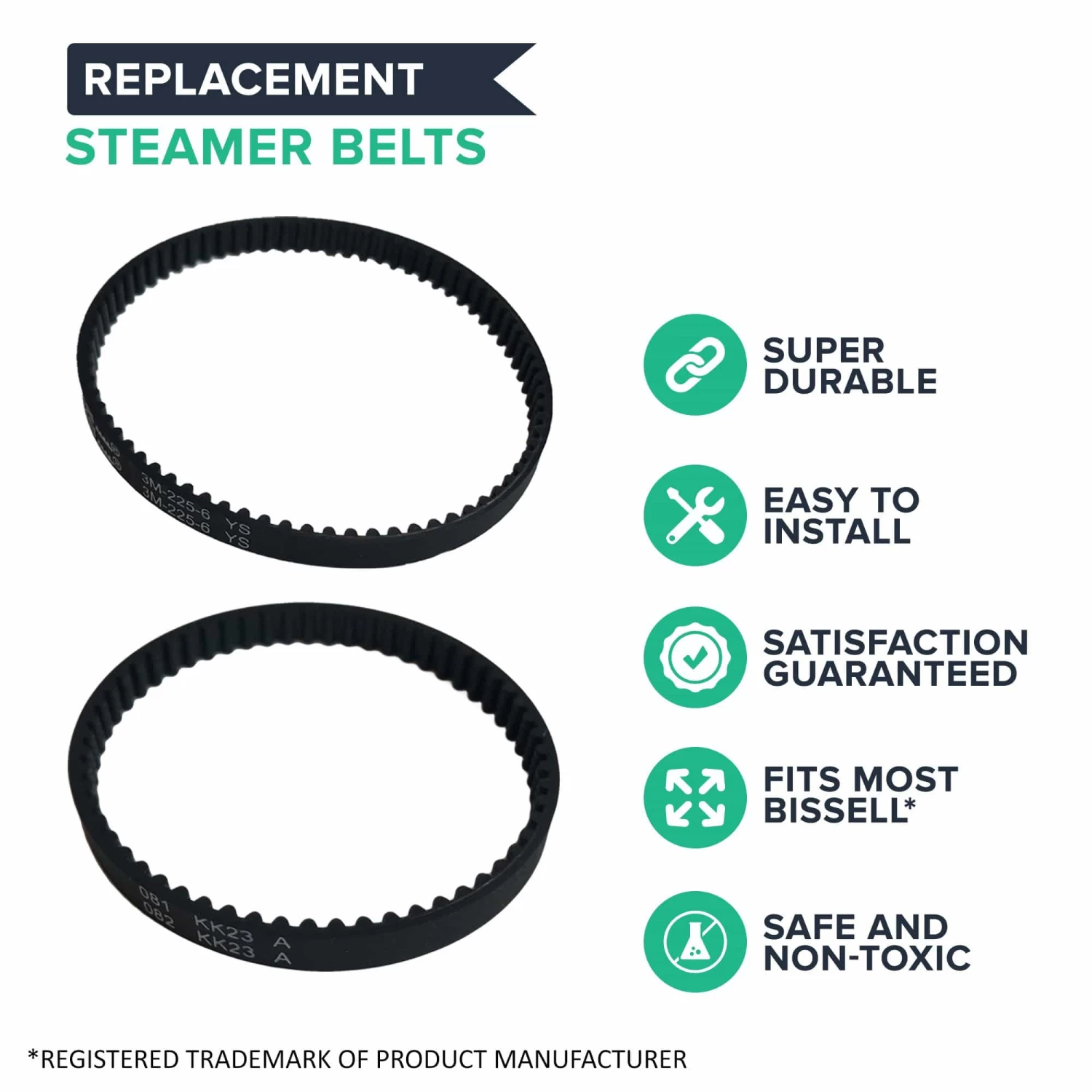 How frustrating is when your steam cleaner takes twice as long to clean the same area as it did when you first got it. This is usually because your brush roller isn’t turning as fast as it used to, which points to your belts going bad. A cleaner belt doesn’t have to break to need replacement; some of them can stretch out of shape or fray badly enough that they can’t spin as fast as they used to. Swap out your belts with this kit. It contains both the left and right side belts for your Bissell ProHeat 2X Series steam cleaner.