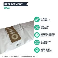 Essentials Replacement Bags, Fit RIDGID 3-4.5 Gallon Wet & Dry Vacs, Compatible With Part VF3501