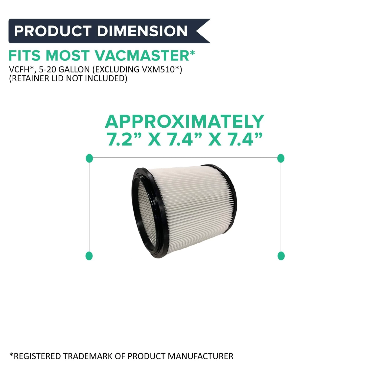 - Replacement Filter Fits Vacmaster Wet / Dry Vacs. Compatible with Vacmaster 5 – 20 Gallon Wet & Dry Vacuums. Does not fit model VWM510. Does not include a retainer lid, please keep yours to use with this filter!